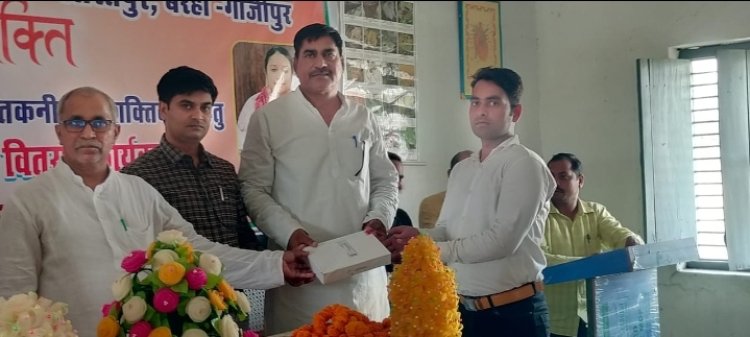 गाजीपुर . सोमवार को श्री महंत मणिराज दास बलिराज पीजी कॉलेज नसरतपुर बरही के प्रांगण में छात्र-छात्राओं को टैबलेट का वितरण किया गया. मुख्य अतिथि ग्राम विकास अधिकारी श्री राजेंद्र यादव ने 145 छात्र छात्राओं को टेबलेट वितरण किया इस अवसर पर उन्होंने कहा कि यह तकनीक का समय है. युवा पीढी इससे वंचित न रहे इस उद्देश्य से प्रदेश सरकार द्वारा छात्रों में टैबलेट का वितरण किया जा रहा है. उन्होने उपस्थित छात्रों का आवाहन किया कि वे इसका बेहतर शिक्षा के लिये रचनात्मक उपयोग करें. आज के परिवेश में टेक्निक और डिजिटल शिक्षा के तरफ देश बढ़ रहा है अब जरूरी है कि अपने आने वाले कल को मजबूत बनाने के लिए शिक्षा की धारा में ही चलें सीखने की या पढ़ने की कोई उम्र नहीं होती प्रत्येक कदम पर ज्ञान प्राप्त होता है आज टेबलेट वितरण सिर्फ एक कार्यक्रम नहीं बल्कि उपहार भी है जिससे आप सभी छात्र और छात्राएं अपने आने वाले कल के भविष्य के लिए खुद को टैबलेट के माध्यम से मजबूत बना सकते हैं