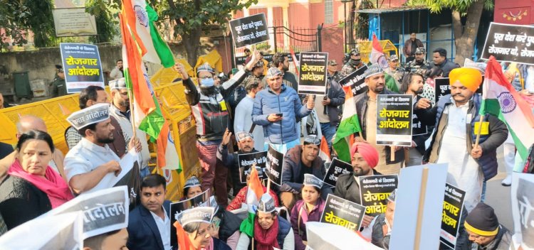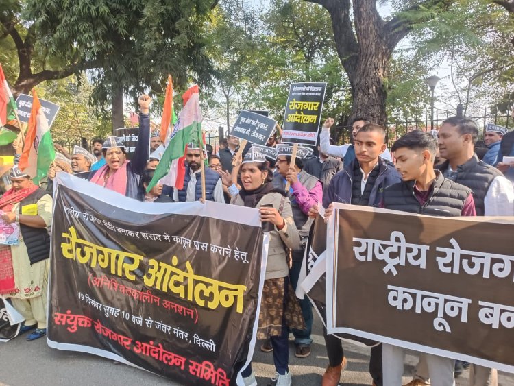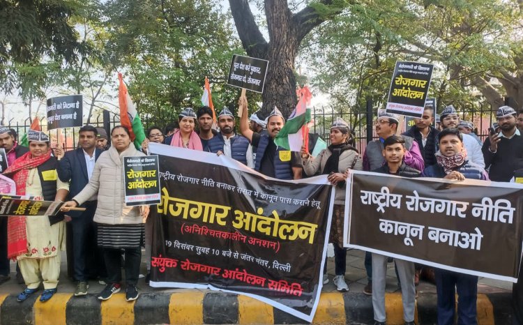 बेरोजगारी के खिलाफ राष्ट्रीय रोजगार नीति कानून बनवाने के लिए जन्तर मंतर पहुंचे सैकड़ो अनशनकारियों को पुलिस ने किया गिरफ्तार