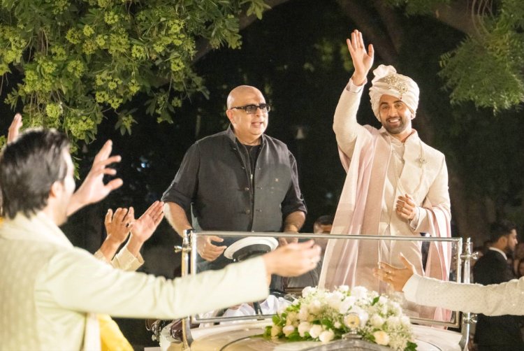 अपनी बेदाग शैली और करिश्मे के लिए मशहूर रणबीर कपूर ने शानदार भारतीय शादी-शैली की बारात के साथ शो का समापन किया, जो शाम का मुख्य आकर्षण बन गया। रणबीर कपूर इस फैशन इवेंट में फेमस डिजाइनर तरुण तहिलियानी के लिए शो स्टॉपर भी बने। रणबीर कपूर का एक वीडियो सोशल मीडिया पर वायरल हो रहा है, जिसमें वह दूल्हा बने नजर आ रहे हैं। उनका यह वीडियो खूब पसंद किया जा रहा है। वीडियो में रणबीर बारात और ढोल-नगाड़ों के साथ ग्रैंड एंट्री लेते नजर आ रहे हैं। वीडियो में रणबीर कपूर आइवरी और ब्लश पिंक शेरवानी और दुपट्टा लिए नजर आ रहे हैं और सिर पर पगड़ी पहने हुए हैं। उन्होंने पिंक कलर की मोजरी भी पहन रखी है। वीडियो में रणबीर कार में बारात के साथ ग्रैंड एंट्री लेते नजर आते हैं। जैसे ही वह रैंप पर आते हैं, सभी उनके साथ डांस करने लगते हैं और रणबीर भी सबका साथ देते हैं।