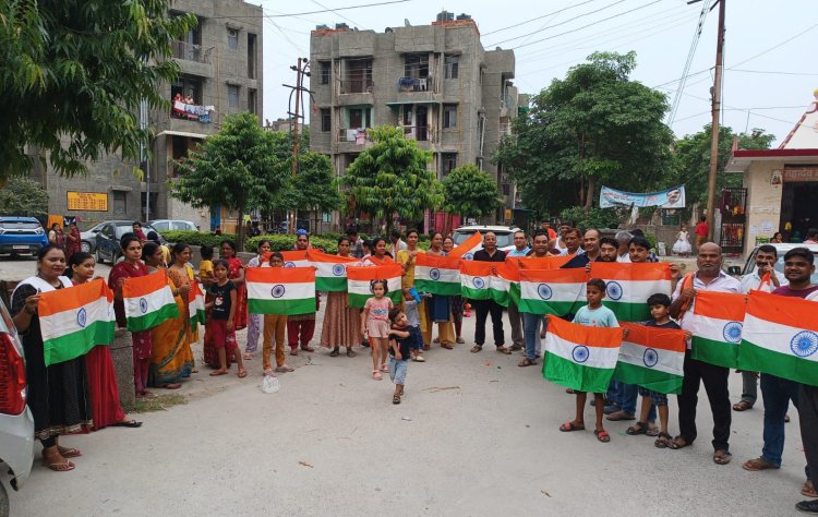 महादेव अपार्टमेंट निवासियों ने किया 1000 फुट लंबे तिरंगे का स्वागत
